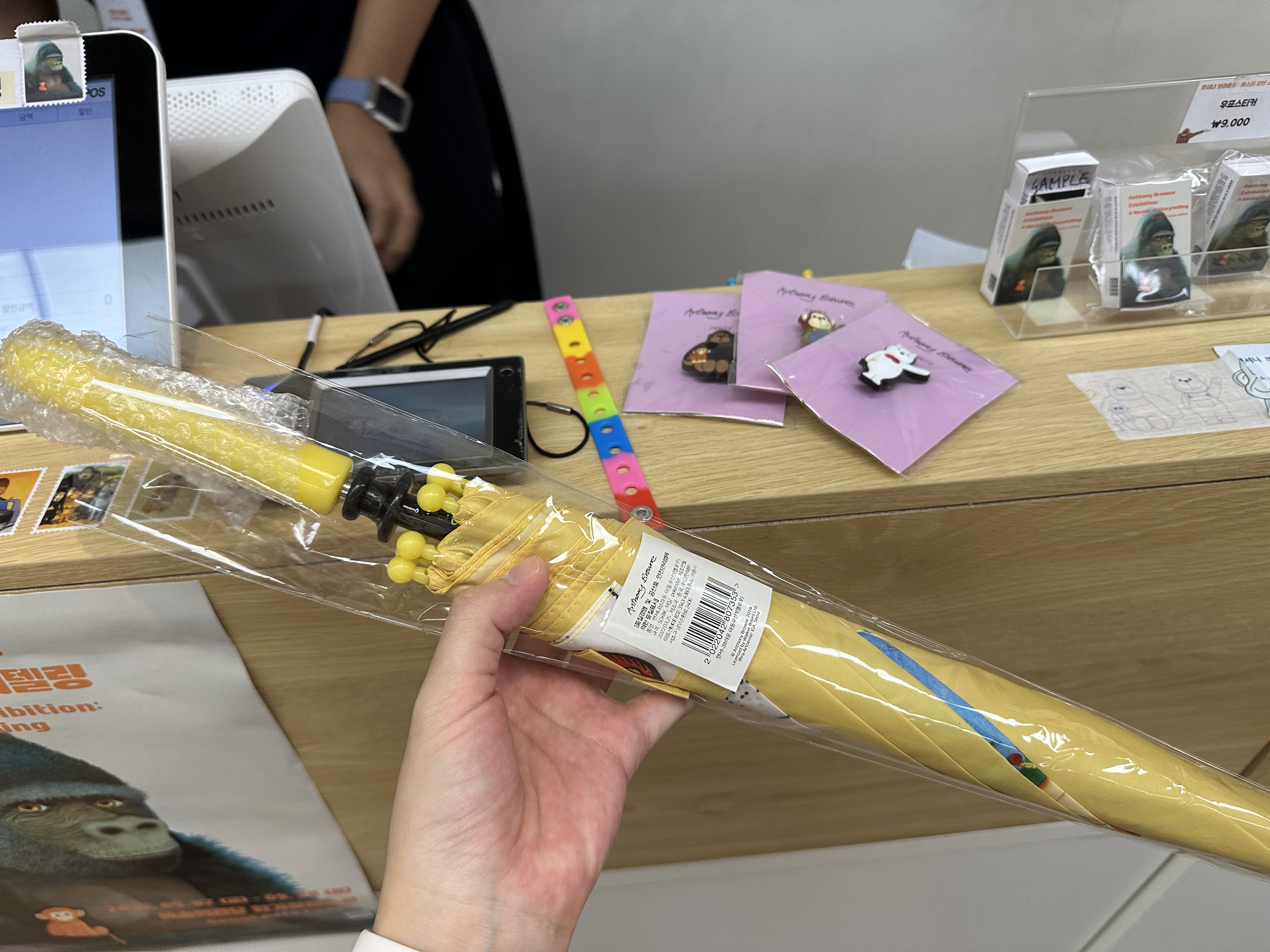 앤서니브라운 굿즈를 파는데 다 너무 귀엽고 예쁘고..! 저희는 아이 지비츠 팔찌와 우산을 사왔어요!