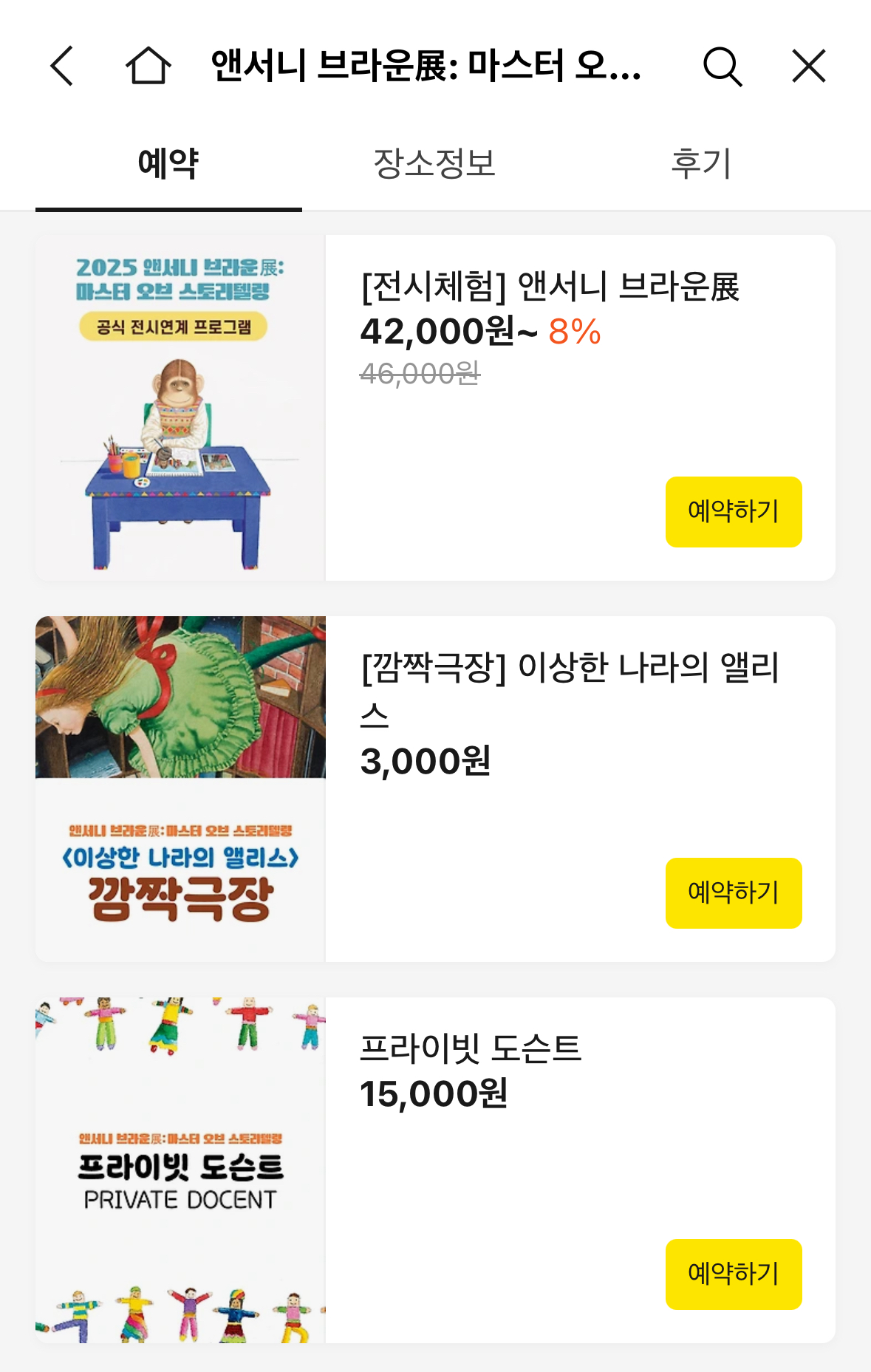 저는 카카오톡 예매하기를 이용해서 어린이/청소년 포함 3인권 티켓을 구입하였구요. 추가로 깜짝극장 이상한 나라 앨리스를 3장 더 구입하였어요. (아이가 31개월로 아직 다른 체험이나 도슨트를 이용하는 것 보단 스토리텔링 깜짝극장 정도가 수준에 맞는 것 같아서요 😉)
