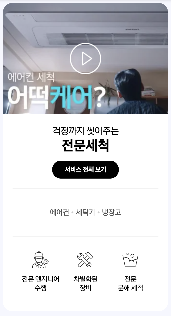 에어컨을 비롯한 다양한 삼성 가전제품에 대해 전문적인 관리와 청소를 제공합니다.