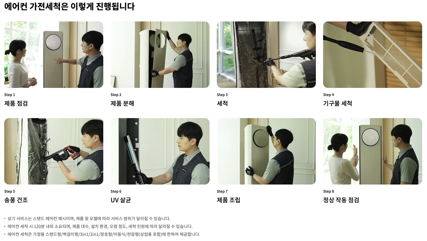 에어컨을 비롯한 다양한 LG 가전제품에 대해 전문적인 관리와 청소를 제공합니다.